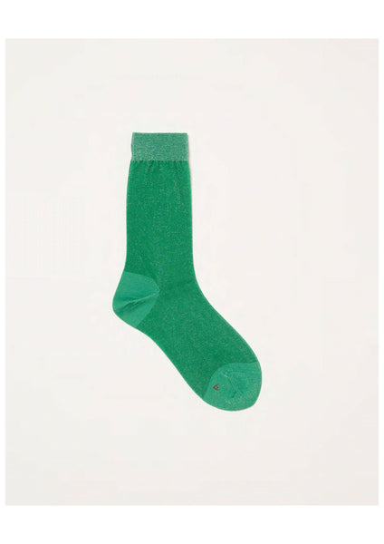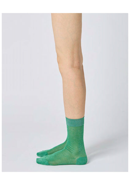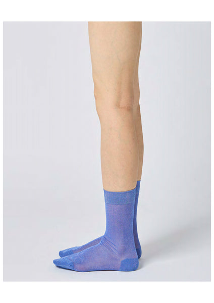 Crew-length sheer nylon socks in fine sparkle-shimmer. One size.
