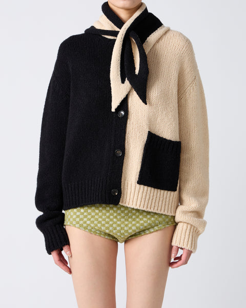 BICOLOUR CASHMERE/SILK TRIANGLE SCARF | VANILLA/BLACK