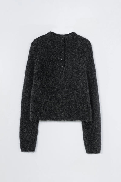 A timeless and iconic sweater from Cordera, in soft, lightweight baby alpaca, with a beautiful Melange knit. Detailed with polo neck with buttons at the neckline, long sleeves with 2 buttons at the cuff, and slightly cropped shape. One-size.